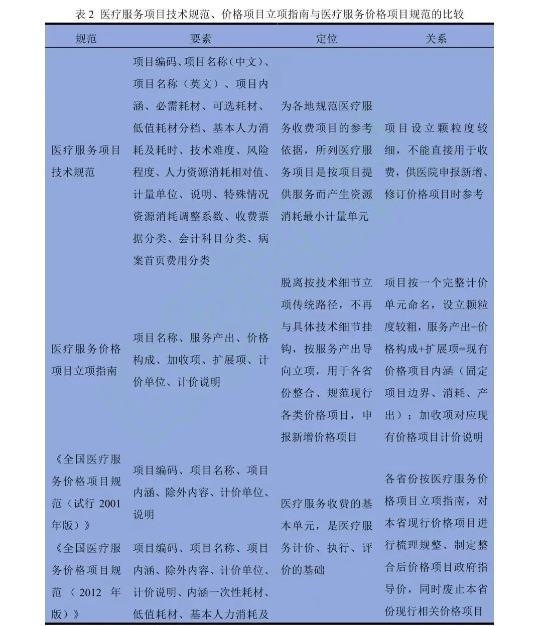 來源:《醫療服務項目技術規範、價格項目立項指南與醫療服務價格項目規範的比較和對接》論文(部分)