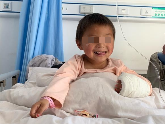 2019年,多指畸形患兒手術後露出幸福的笑容