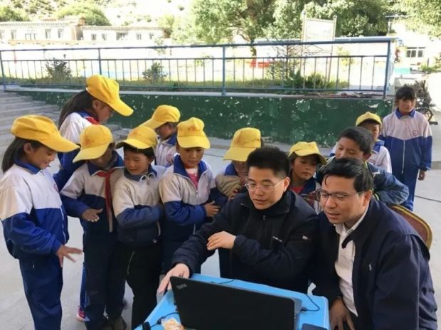 2017年9月,林劍浩(右)、李虎(左)團隊在昌都對學齡兒童進行大骨節病新發病例的篩查工作