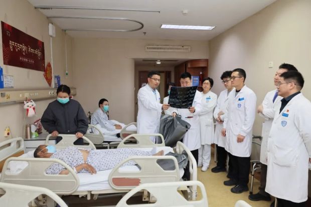 當大多數人都沉浸在闔家團圓的温馨氛圍中時,李虎與醫院的同事們依然在臨牀上忙碌着,而他們的“客人”,是一羣來自西藏的大骨節病患者。