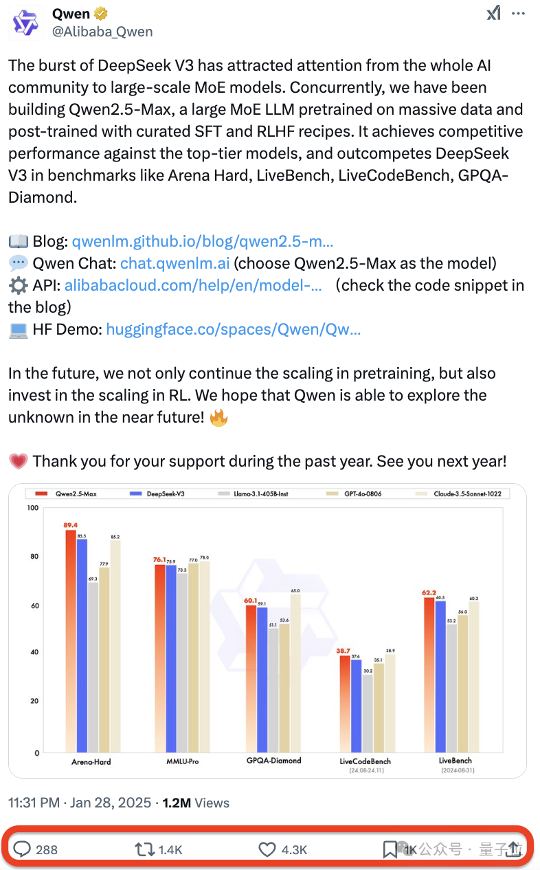 Qwen2.5-Max來襲,多個基準測試中超越當紅炸子雞DeepSeek V3。