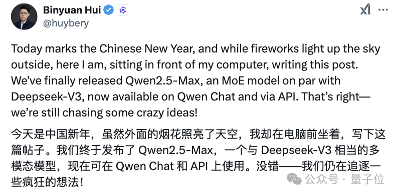 之前曾自曝阿里大模型員工996作息表的Binyuan Hui也再次現身: