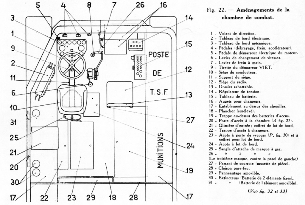 駕駛艙的內部佈局。新炮塔不僅擴大了炮塔環,還改進了觀瞄設備,這些設備與用於 Char B1 bis 的 APX 4 炮塔 進行了統一標準化。實際上,APX 1 CE 和 APX 4 彼此非常相似。更重要的是,這兩款炮塔都換裝了更強大的47 毫米 SA 35 火炮。然而,火炮本身成為了新的瓶頸,因為其批量生產直到 1937 年 1 月 才正式開始。