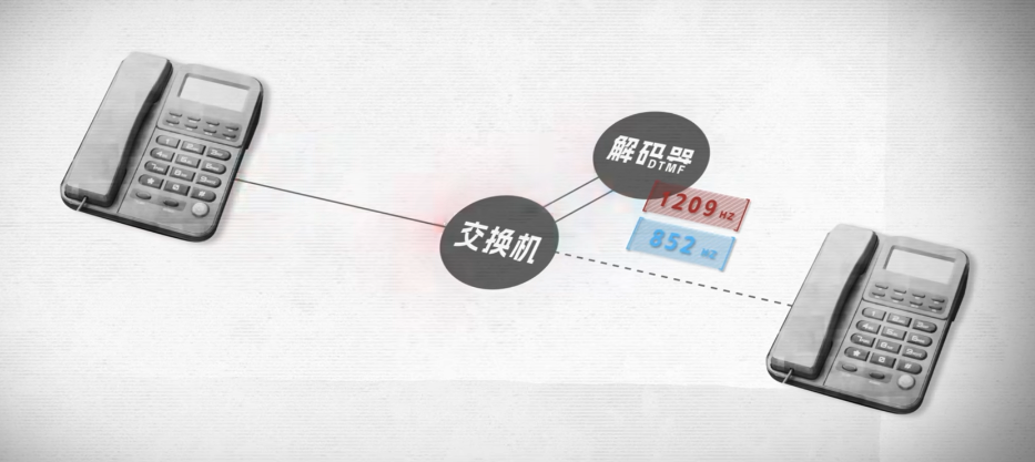 當你在按電話號碼時,交換機會持續監聽這串音頻信號,然後傳送給 DTMF 解碼器。解碼器再把這個音頻還原成兩個頻率,再根據撥號盤的排布來匹配具體的號碼。