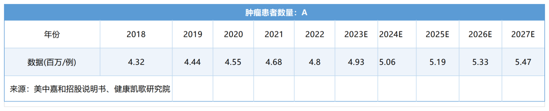 從如下的數據裏我們可以看到每年新發癌症人數到2027年預計將達到 550萬人,而根據國家癌症中心的報告,中國的癌症新發人數在全球排名第一。