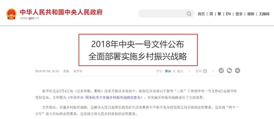背後有一個很大的支點,來自2018年的**“一號文件”**