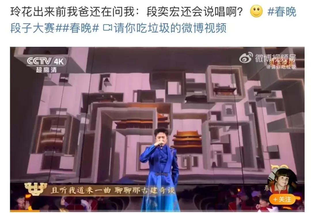 説《鳳凰傳奇》上春晚,玲花出來前老爹看着台上的曾毅説:段奕宏還會搞説唱?