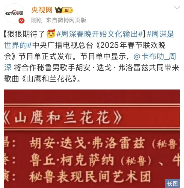 所以今年的春晚明顯更國際化,除了請來OneRepublic唱搖滾、還有承擔文化輸出重任、找來秘魯歌手合唱的《山鷹和蘭花花》。