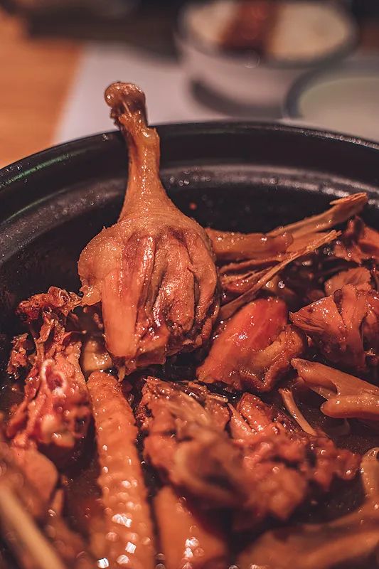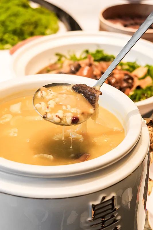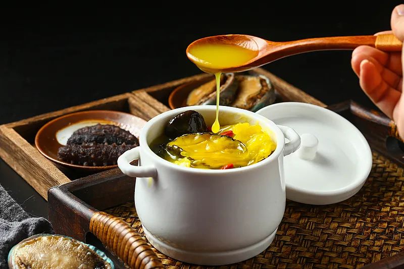 工序也格外精細複雜,需要將幾十種原料加工處理,分批次放入紹興酒甕,密封之後,再以文火慢煨。多樣的食材在湯底中既融匯合一,又保留了各自的精華特色。吃一口,就忘不了。