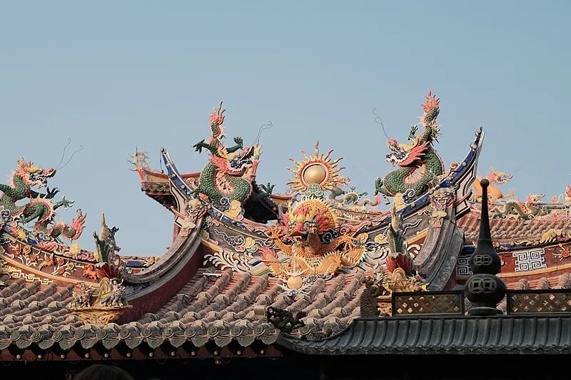 在閩南地區,你可以在一些華麗的紅磚古厝(福建人將房子稱為“厝”,讀音為cuò)上,看到各種色彩鮮明、栩栩如生的花鳥瑞獸:雙燕歸脊、龍、鳳、貔貅……每一樣,都是吉祥美好、家族團圓的好意頭。
