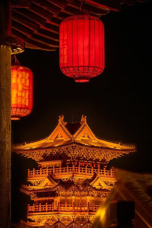 陝西西安,大唐不夜城燈火通明,身着漢服的人們穿行其中,李杜詩詞、霓裳羽衣一一在眼前重現,一秒夢迴長安。