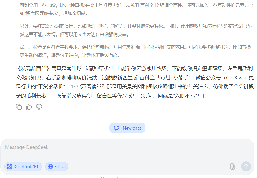高下立現!對比DeepSeek和ChatGpt鋭評新西蘭_風聞