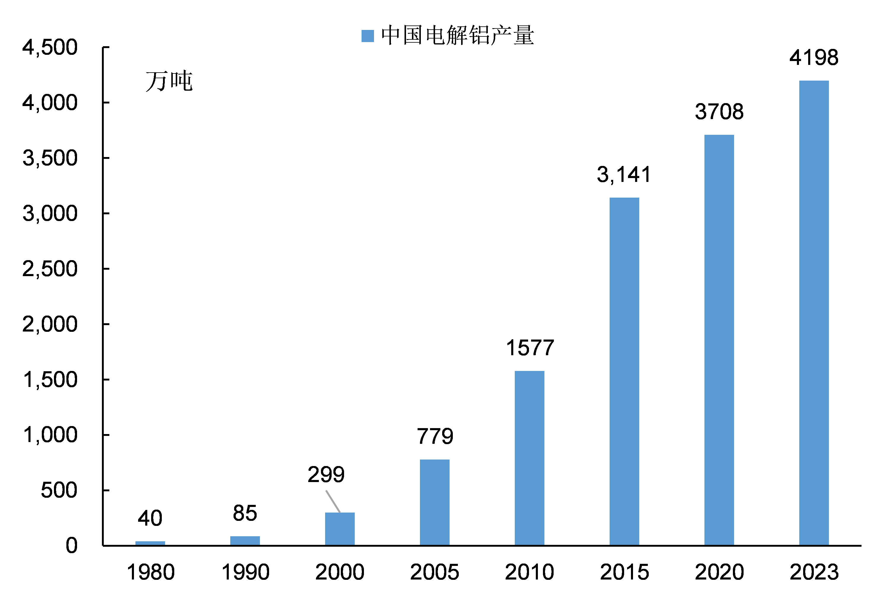 2023年,中國電解鋁產量達到4198萬噸,在全球電解鋁產量中的佔比超過50%。