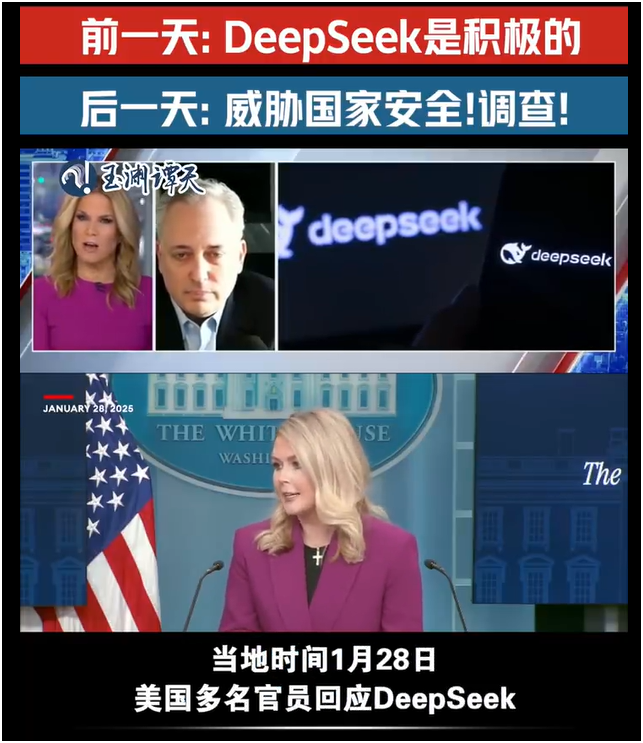 白宮新聞秘書即叫囂deepseek 威脅美國的國家安全,美國政府已經對deepseek 展開調查。