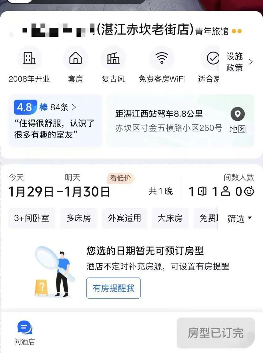 在湛江赤坎老街開了家青年旅舍的陳哥透露,以往有不少揹包客都是去海南玩的時候會在湛江歇腳一晚再坐船過去,很少有人專門到湛江玩,所以春節期間的房間總是訂不滿。今年的情況不同,基本在過年期間,沒有空房,連牀位都沒有了。