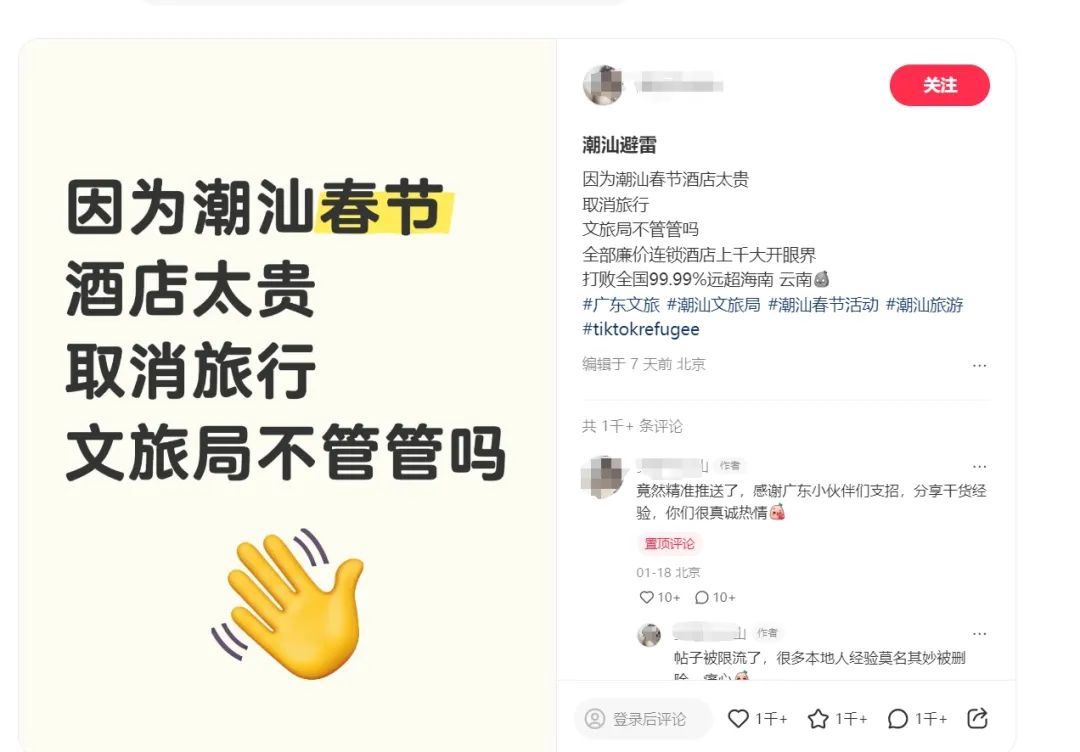 “雖然小城年味兒足,活動看上去很新奇、好玩,但這個酒店費用漲得太離譜了。”姿姿甚至在小紅書上發表了一篇“潮汕避雷”貼,來提醒想來潮汕過年的人。
