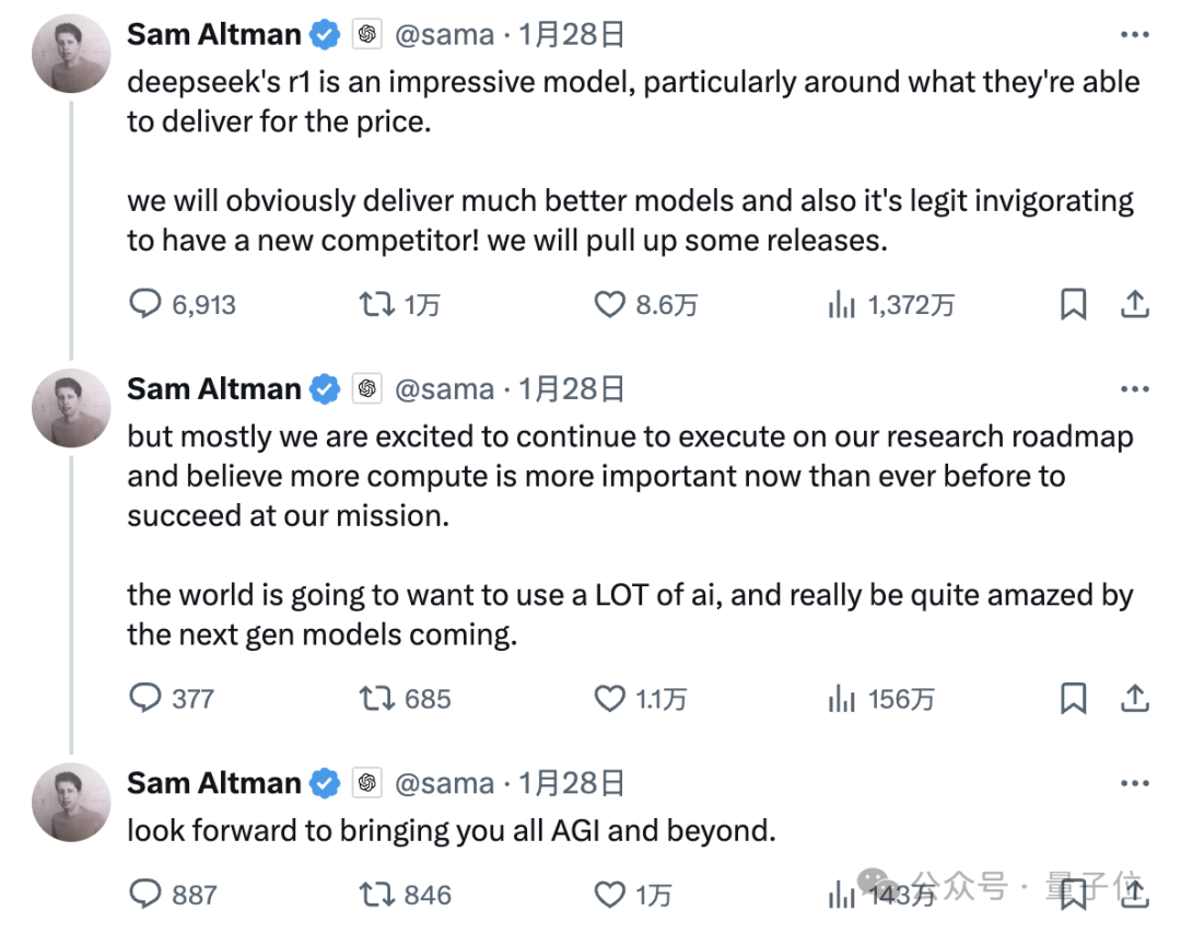 他承認DeepSeek R1讓人印象深刻(尤其是成本),但OpenAI“很明顯會帶來更好的模型”。