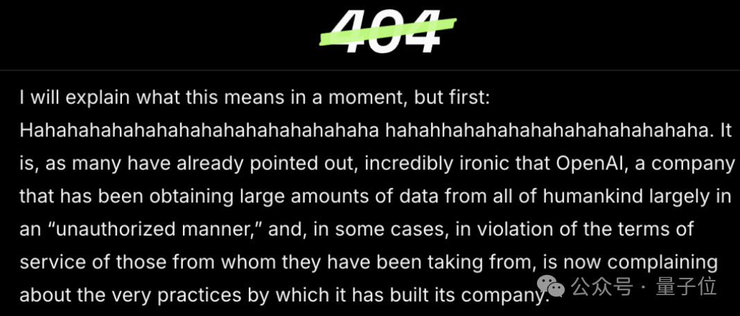 先容我笑一會兒哈哈哈哈哈哈。真是令人難以置信的諷刺啊,OpenAI一直以“未經授權的方式”獲取大量數據,也違反了一些組織的條款規定,結果現在他們卻在指責自己的做法。