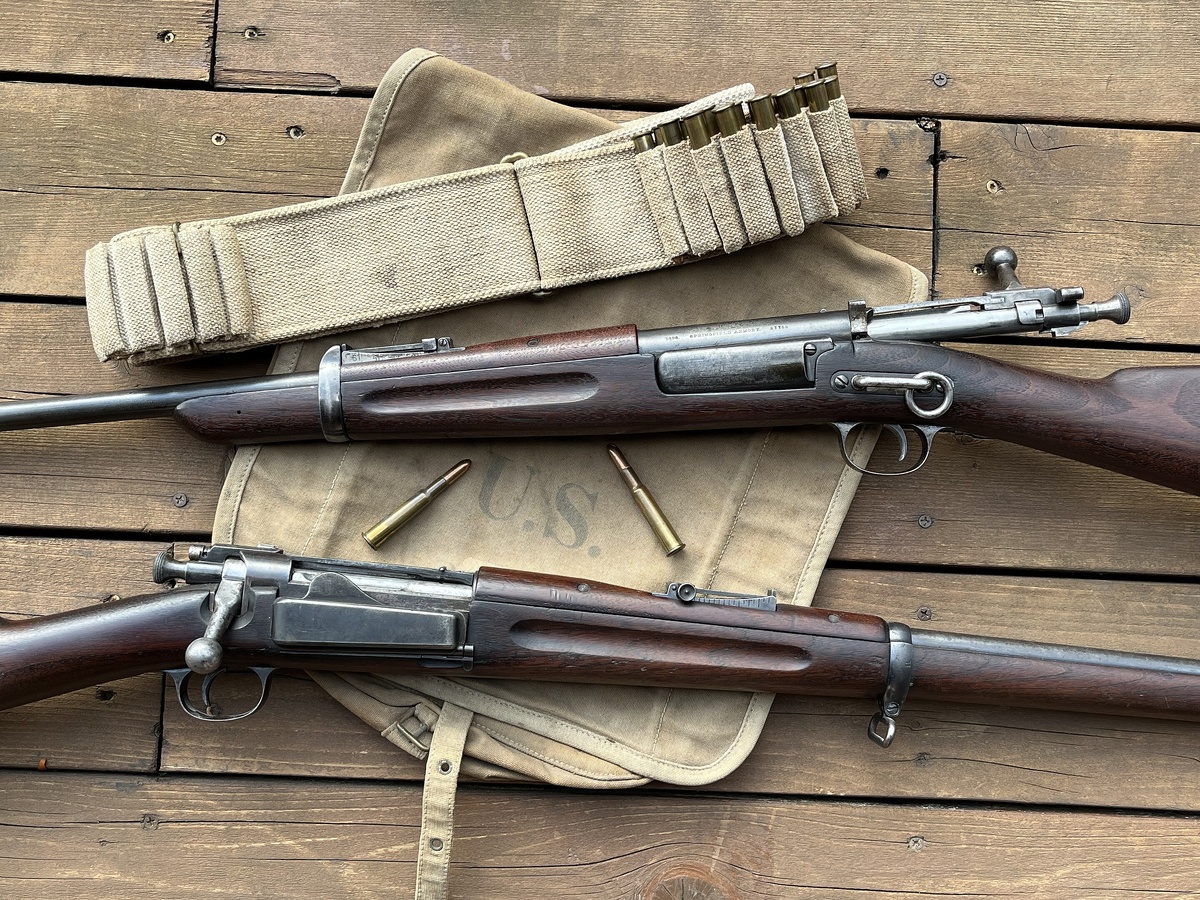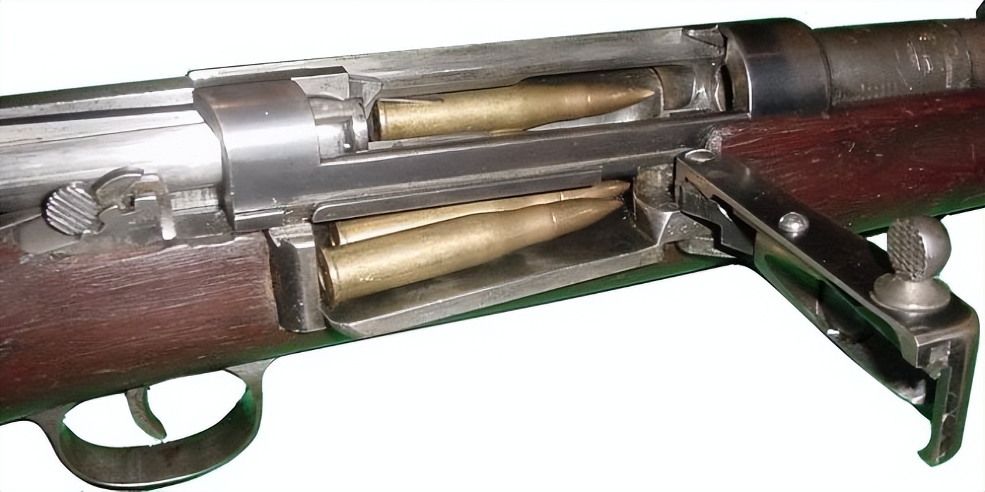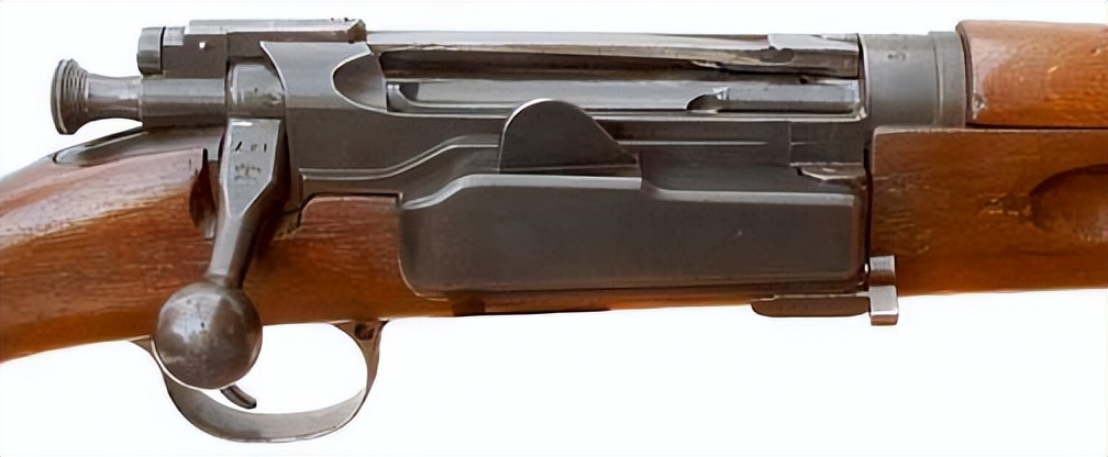 注意觀察右側下方小的彈匣盒。儘管生產量很大,這款步槍卻是最不為人知的挪威“克拉格-約根森”(Krag-Jørgensen)型的衍生版本,它是這款步槍的許可複製品,幾乎與原版沒有什麼不同,唯一的區別就是使用了美國的.30-40 Krag(7.8x58.8毫米)彈藥。這款武器曾長時間是美國軍隊的標準制式步槍,直到第一次世界大戰後,才被著名的“斯普林菲爾德 M1903”取代。後來,許多美國版“克拉格”步槍進入了民用市場,長時間在體育和狩獵中大受歡迎,並且至今仍為收藏家所青睞。
