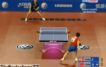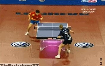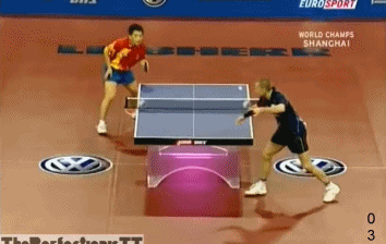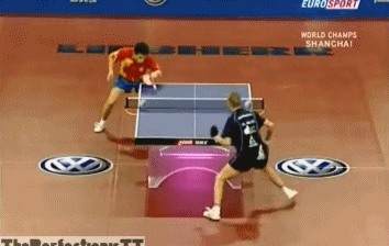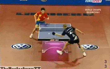 他是左手橫拍,兩面反膠弧圈,旋轉非常強,與此同時,他還擁有難得的細膩手感,對於線路的選擇和落點的控制都非常出色。