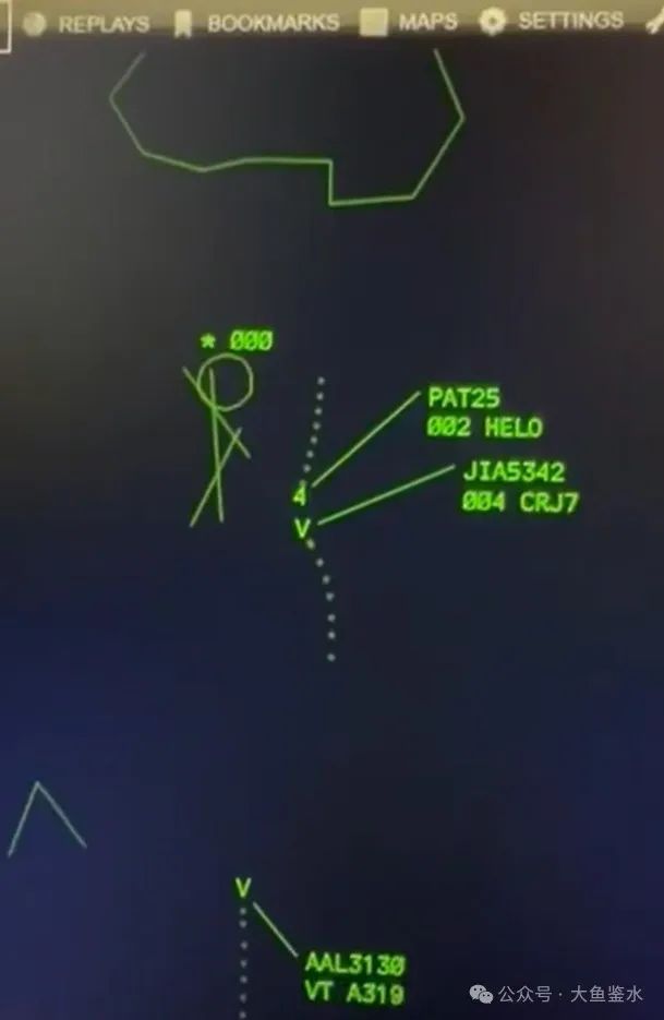 在美國社交媒體上有不少航空專業人士分析,黑鷹飛行員向塔台報告目視接觸CRJ時,他們實際看到的是前方更高高度上向01跑道進近降落的一架美國航空A319(見下圖空管顯示屏截圖下方),直到撞擊時他們都沒有意識到真正CRJ的存在。