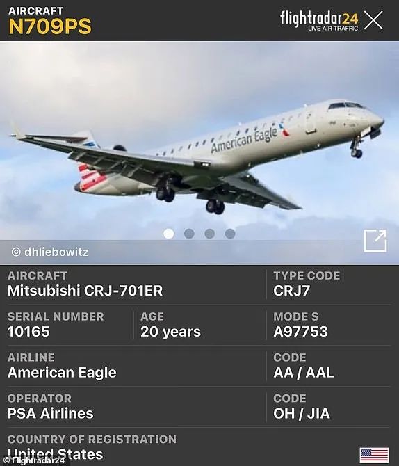據聯邦航空管理局FAA表示,事發時,美國航空(American Airlines)的龐巴迪CRJ700支線噴射機在接近華盛頓里根國家機場33號跑道時,與一架西科斯基H-60直升機(通常稱為黑鷹直升機)在空中相撞。