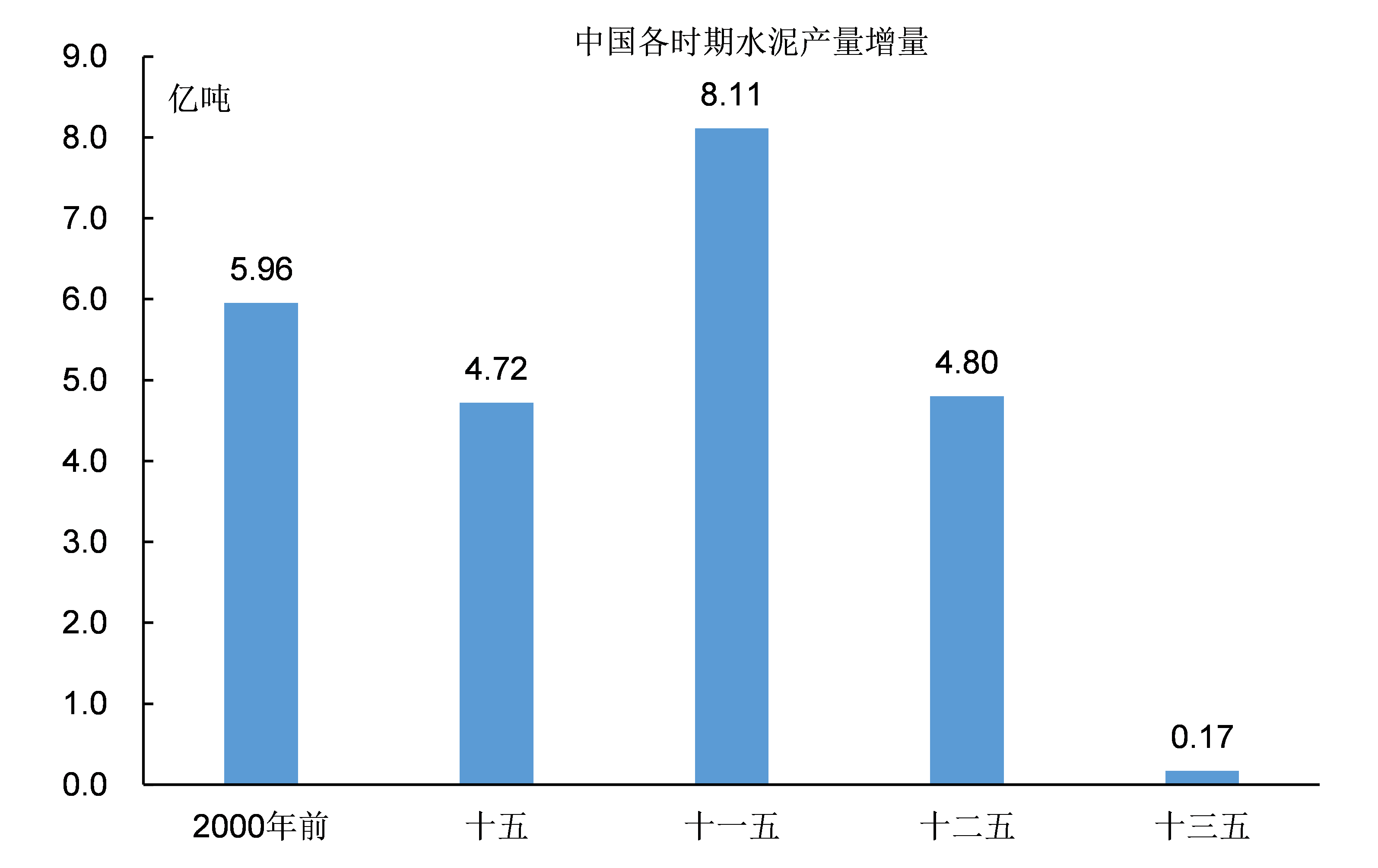 在“十一五期間”(2006~2010),中國的水泥產量在5年內增長了8.11億噸,大幅超過了水泥工業前50年的產量增量。