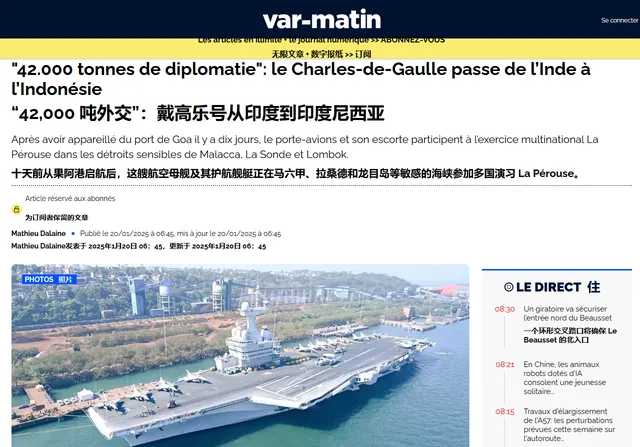 唯一航母送來亞太,法軍很普信:讓中國看看什麼叫4.2萬噸的外交_風聞