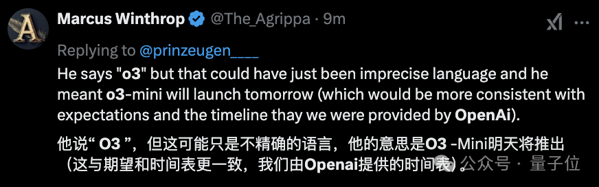 不過也有網友指出,他所説的“o3”還是指o3-mini,對於這一模型的上線,奧特曼本人已經預告已久。
