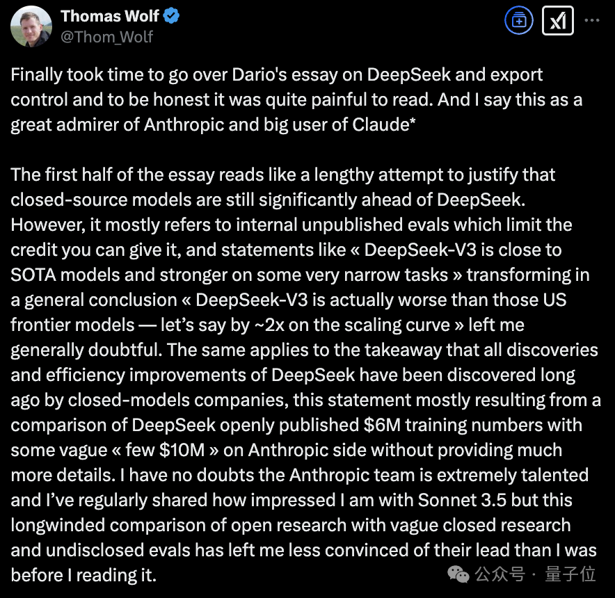 而針對Anthropic等面對DeepSeek競爭的不敞亮反應,也有越來越多反對的聲音正在出現。