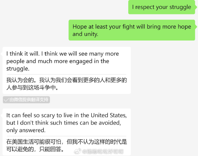 然而令我最為感慨萬千的是:斗轉星移,一百多年後的今天,竟然也輪到我這個平凡的中國人,隔着太平洋來鼓勵普通🇺🇸人【堅持希望和團結】。