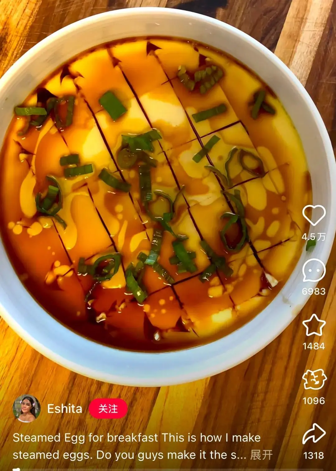 加了醬油和葱花做點綴,甚至還特意用刀劃塊,這蛋賣相好到評論區的中國人紛紛驚歎:起猛了,竟然都看到老外教我做蒸蛋了。