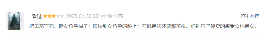 看來,很大概率還是無意識行為,或者説已經到了自動觸發技能的水平了。除非是整個電影裏面不出現任何女性角色,否則都能被這些人找到發飆的理由。
