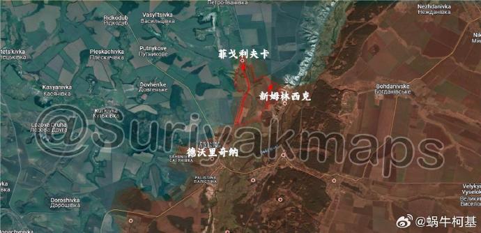 2、德沃裏奇納:俄軍在新姆林克西北取得了重大進展,控制了菲戈利夫卡。