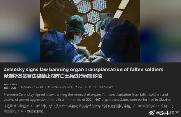 澤連斯基簽署法律禁止對陣亡士兵摘取器官,挺烏人士快來和我説説,你們説不存在的這467起器官移植是怎麼做到的?