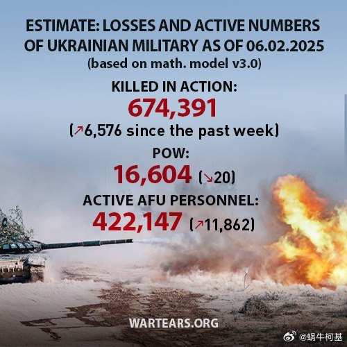 戰爭之淚繼續發佈烏軍損失:67.4萬KIA,對比上次,一週近7000增長……