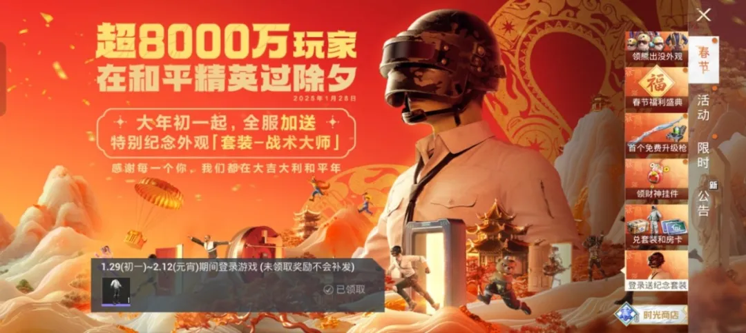 春節這樣的節日節點往往是遊戲尋求破圈的絕佳機會。今年的《和平精英》顯然又一次抓住了這個機會,實現了最大範圍的用户輻射。