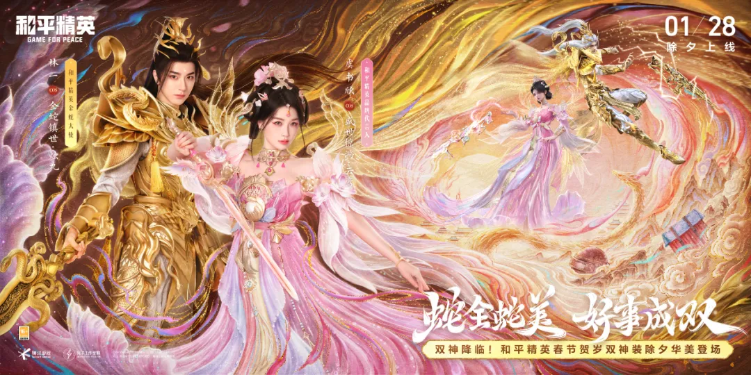 遊戲在春節期間上線的兩套蛇年賀歲套裝——至尊純金神裝“金蛇鎮世”和盛世女帝神裝“盛世驚鴻”分別邀請到林一、虞書欣來演繹皮膚角色。而新春皮膚“賽博古神”則請到了陳都靈演繹其中之一的“女媧靈識”角色。