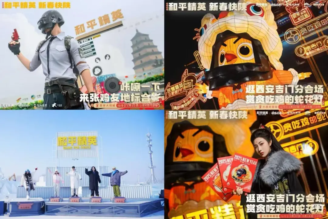 今年春節,《和平精英》與陝旅集團合作的西安芙蓉園新春燈會、大雁塔打卡點、華清宮互動大屏都擠滿玩家。而位於哈爾濱冰雪大世界的《和平精英》地鐵暴富樂園,在上海舉辦的《和平精英》神裝應援趴體等活動也吸引了許多玩家參與。
