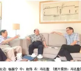 趙偉(中)、馮達旋(右)在楊振寧(左)家中談話 | 圖片來源:馮達旋