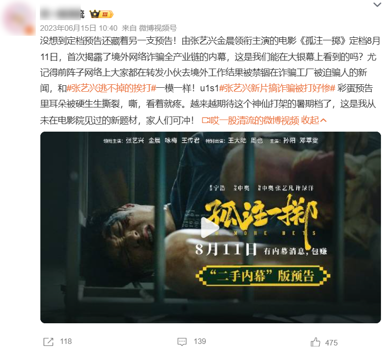 比如這個, “ 張藝興新片搞詐騙被打好慘 ” 。