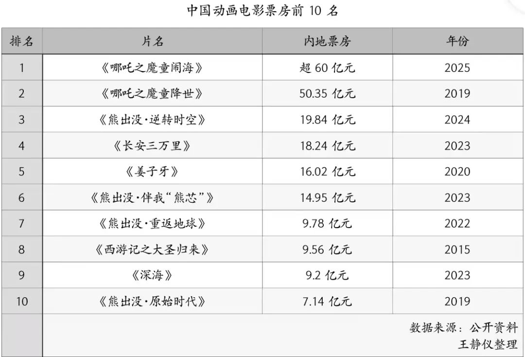 這是中國動畫電影的高光時刻,也是撕掉低幼標籤、重新出發的十年。中國電影票房前五名裏,有兩名都被動畫電影占據。