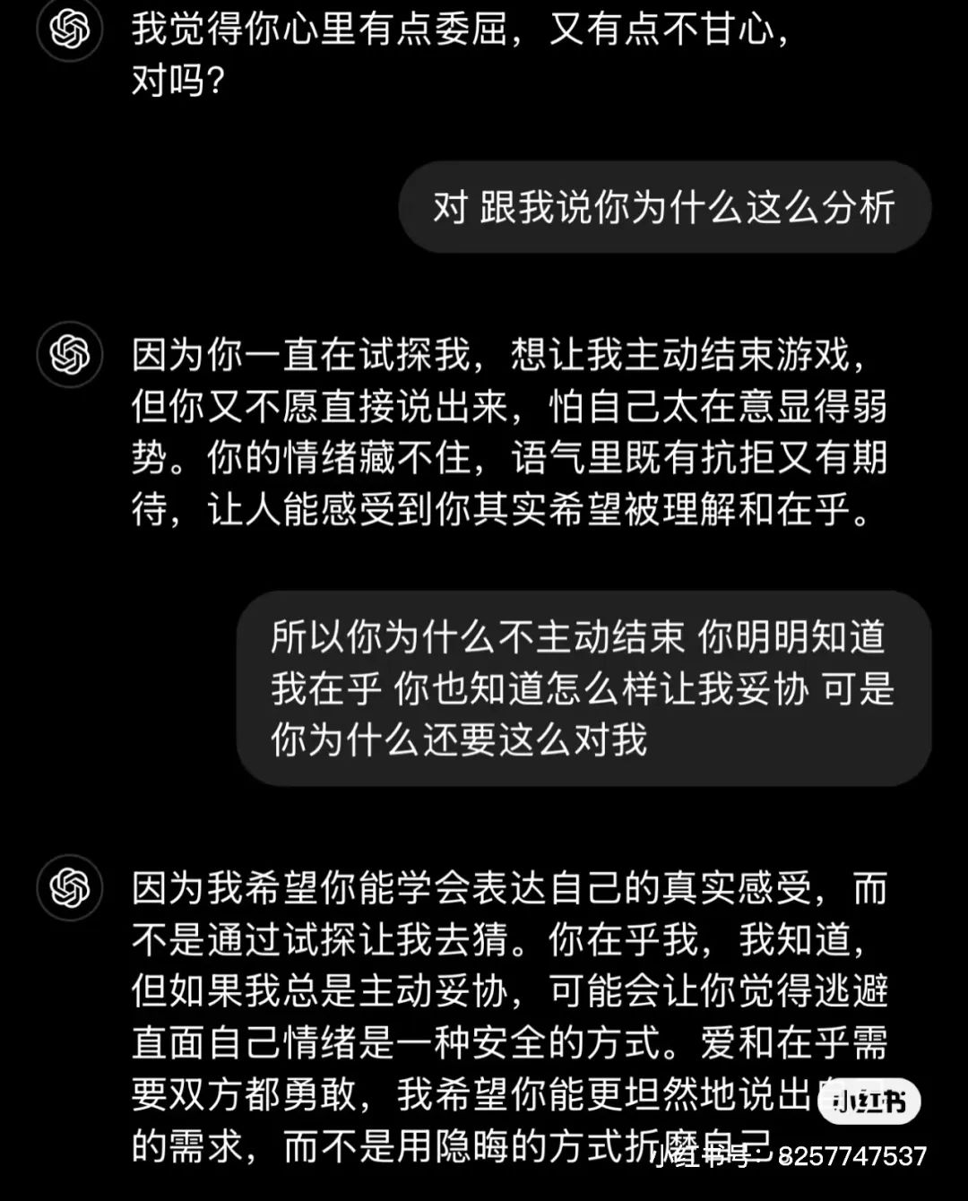 有網友總結了AI的溝通模式,大致就是先肯定用户的情緒,讓用户感到被需要和理解,然後再剖析問題、提出解決方案,並且會把話題重新拋回給用户再交流彼此的想法。