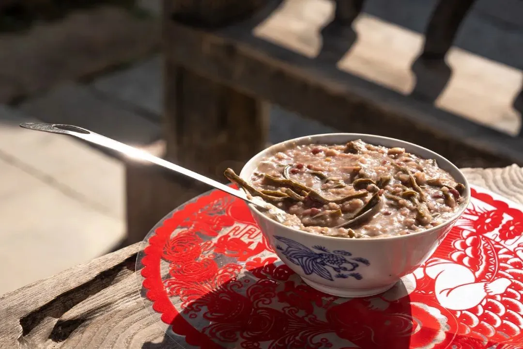 人們通常會先盛上一大碗臘八粥,端到八仙桌上敬祖祭神,接着分給鄰里鄉親品嚐,最後才是自己享用。而當全家人歡聚一堂,喝着熱氣騰騰的臘八粥時,過年的氣氛也就在穀物香氣中被提上日程。