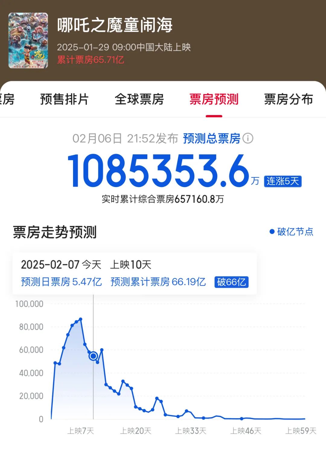 △ 截止發稿日,《哪吒之魔童鬧海》總票房預估超過108億人民幣