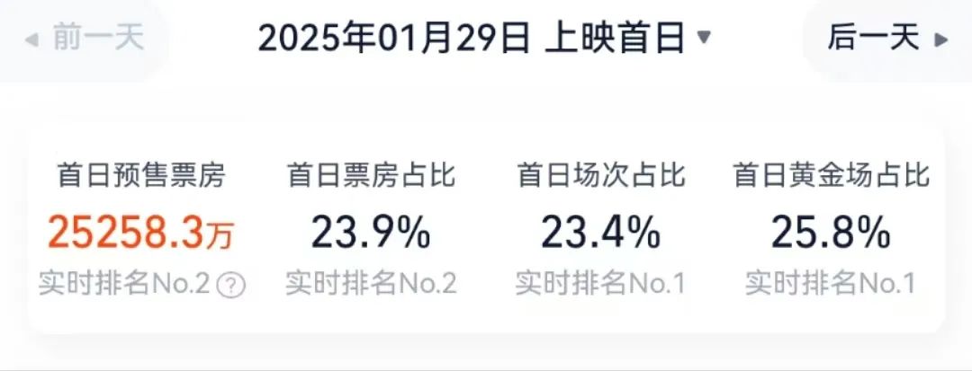 影片公映首日,在上午10點到12點這個時段的票房增長緩慢,僅佔全天票房的10%,而同期其他熱門影片在該時段的票房佔比達到了15%。