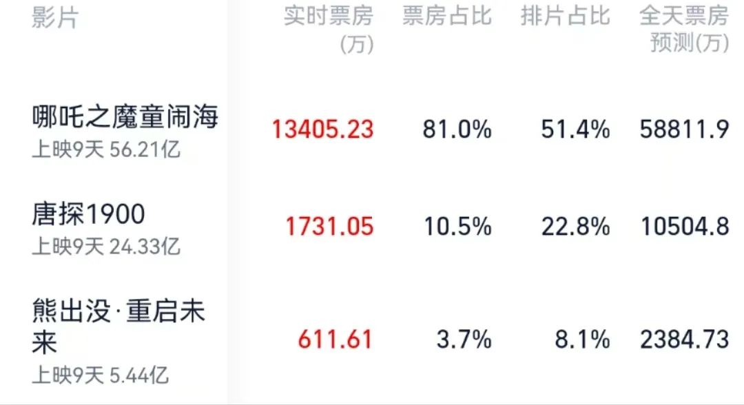 只可惜,受到《哪吒之魔童鬧海》的影響,《熊出沒・重啓未來》在初期備受壓制,直到大年初六,重回榜單單日前三的位置。