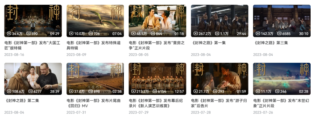 為此,官方推出了一系列特效場景展示視頻,每個視頻時長約1.5分鐘,着重展現影片中震撼的戰爭場面和精美的神話場景,在B站平台的播放量總計超過800萬次,影片的 “想看” 人數在預熱期迅速增長至60萬+。