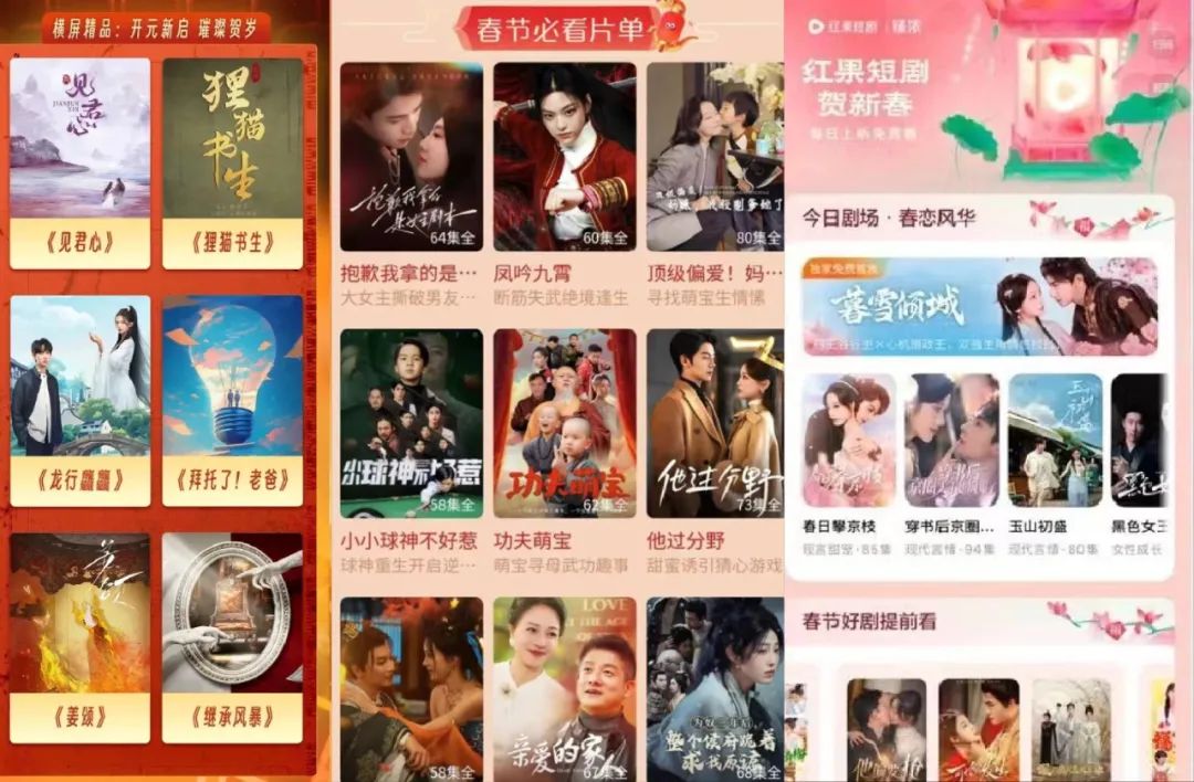 其獨家作品陣容相比其他平台也顯得更為突出,從舒暢主演的古裝大戲《錦繡傳》和《蛇年大吉之小青渡劫》,到王格格主演的都市情感劇《春日遲》,都顯示出作為目前領跑的短劇平台在內容層面的投入……數量與質量並重的策略,使得紅果短劇在春節檔競爭中依然佔據着最有利的位置。