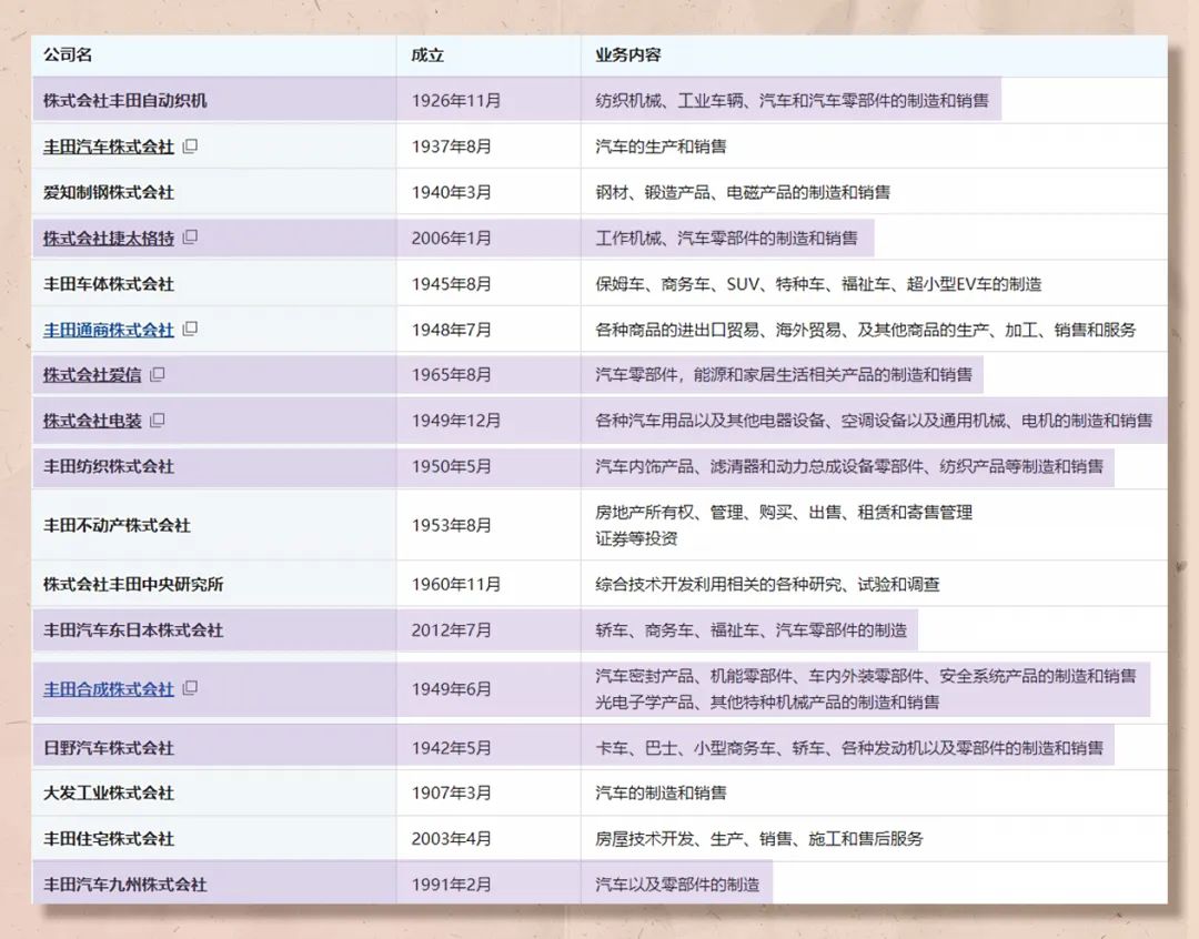 豐田集團一共包含17家公司